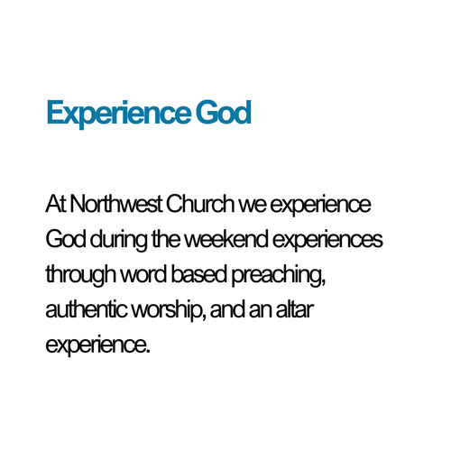 Whether you're new to church, have been a Christ follower for many years, or are looking for a fresh start, Northwest is a place for you. We hope you will experience a fresh connection to God and community.